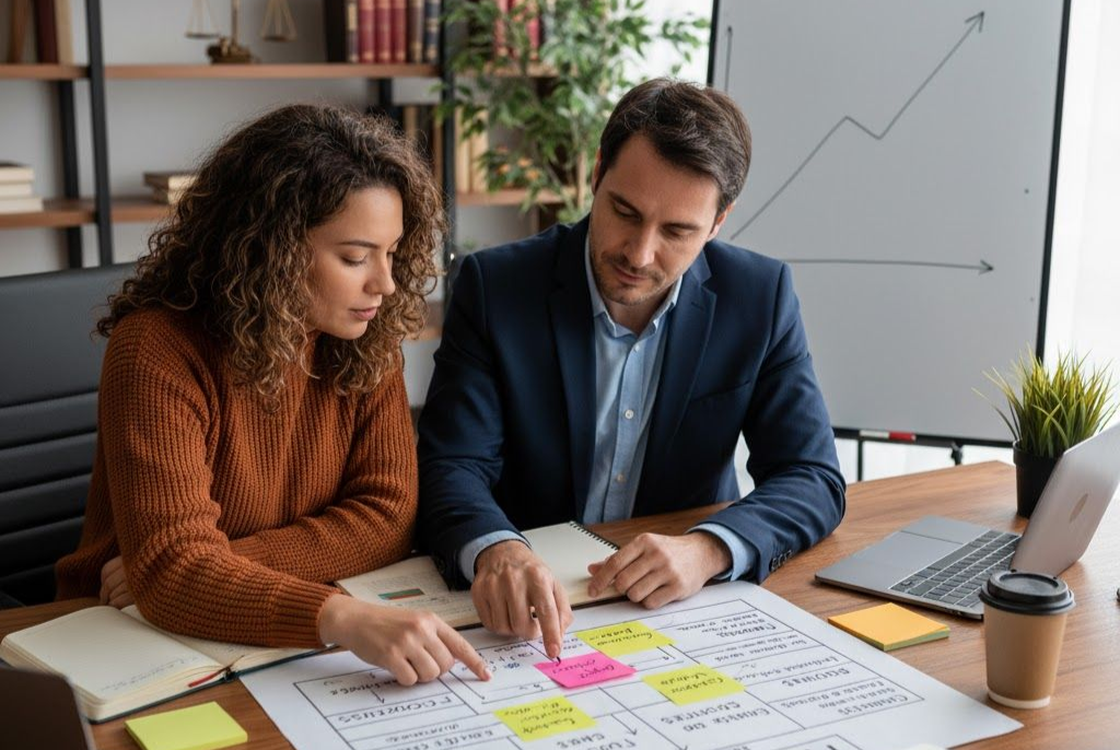 Dica prática: crie um “canvas da parceria”. Um quadro simples com: propósito, funções, entregas, ganhos, forma de comunicação, gestão de conflitos. Quanto mais claro, mais saudável será a relação.